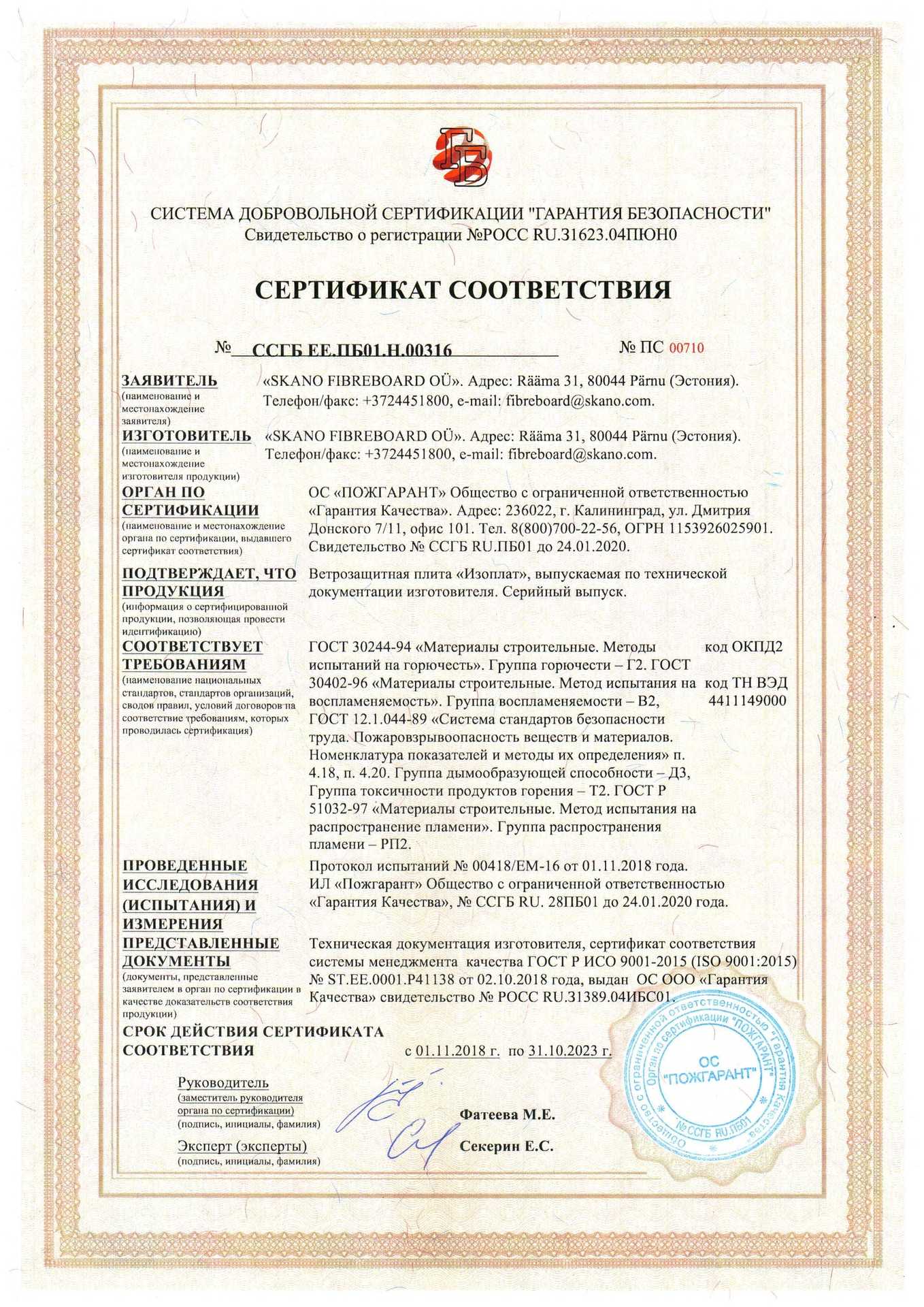 Подтвержденное сертификатами и действующими ГОСТ